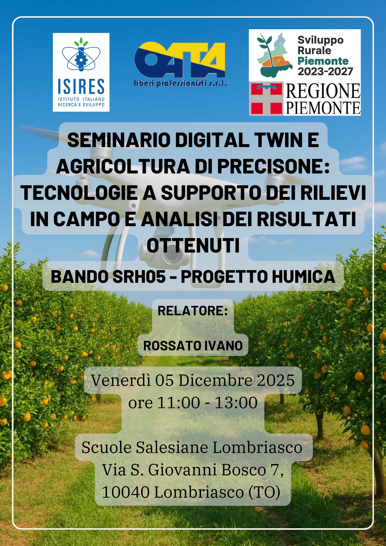 SEMINARIO| Digital Twin e agricoltura di precisione: tecnologie a supporto dei rilievi in campo e analisi dei risultati ottenuti
